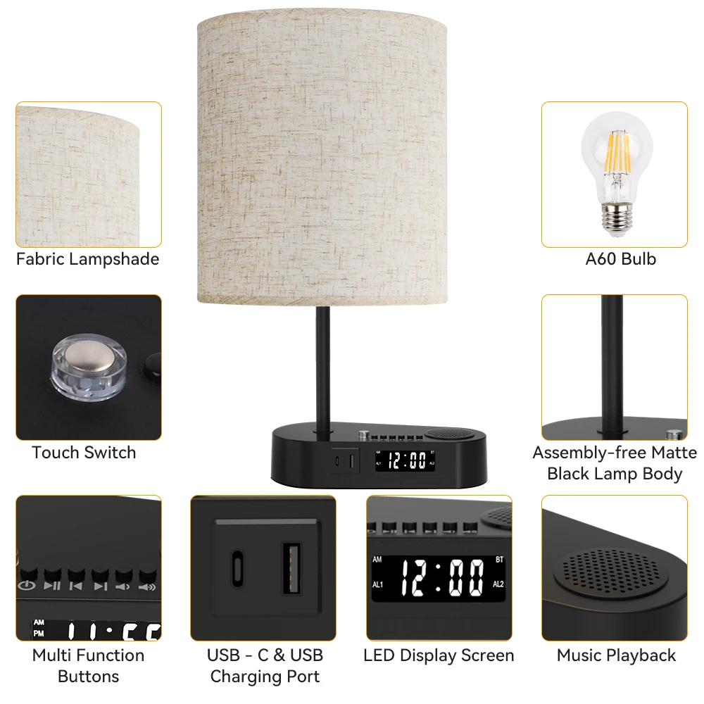 XuBHTDvBHere you can buy LED Fabric Table Lamp Multifunctional Desk Lamp wiht Bluetooth LED Display Screen Clock Music Alarm Clock Touch Bedside Lamp with free delivery to your post office.