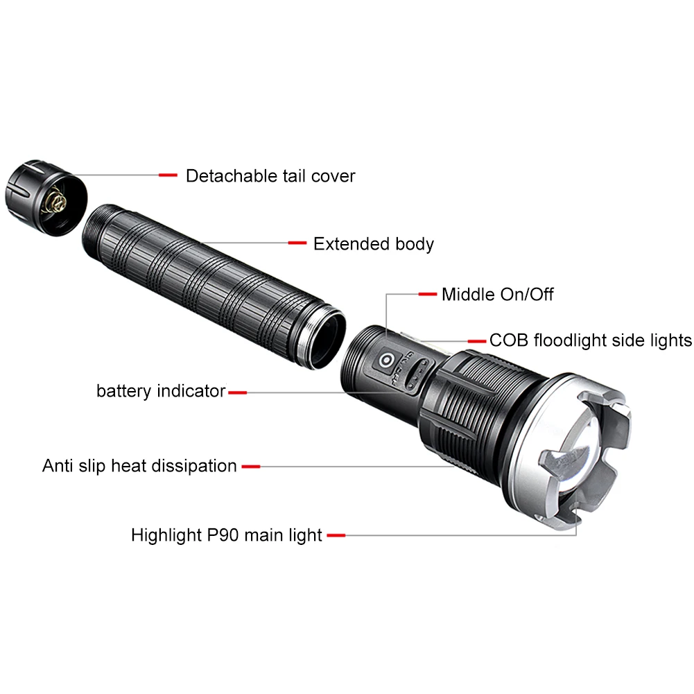 XNjoMjCYVlHere you can buy LED Flashlight Torch Camping Light 7 Light Mode Compact Torch USB Charging Dual Light Source Torch for Outdoor Fishing Emergency with free delivery to your post office.