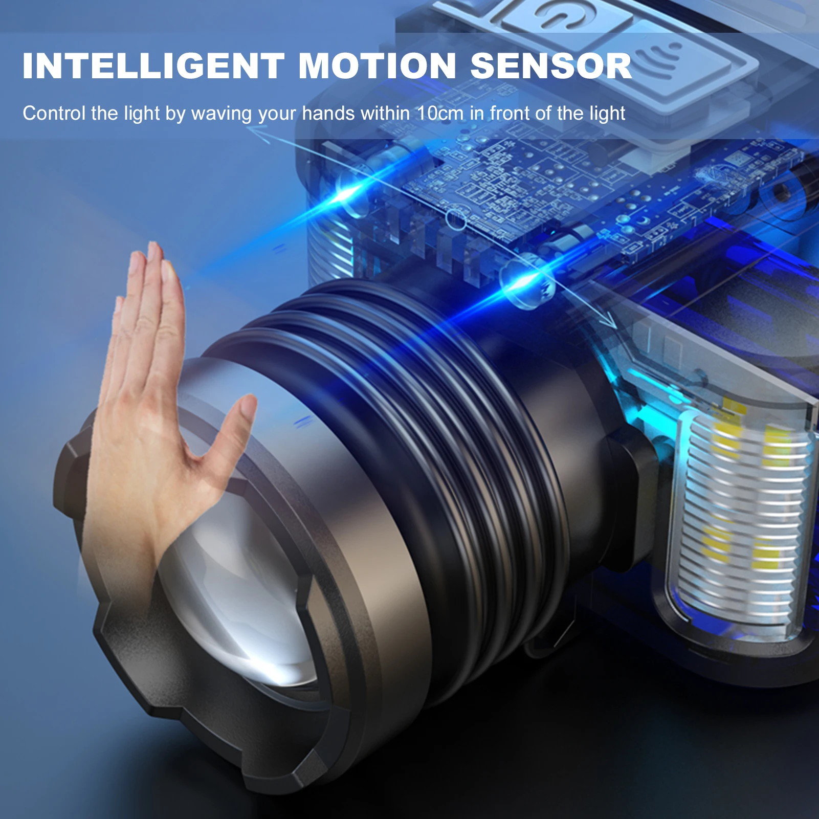LED Headlamp with Motion Sensor Waterproof USB Rechargeable Headlight Work Light Flashlight for Camping Hiking Fishing Cycling - Купить с бесплатной доставкой