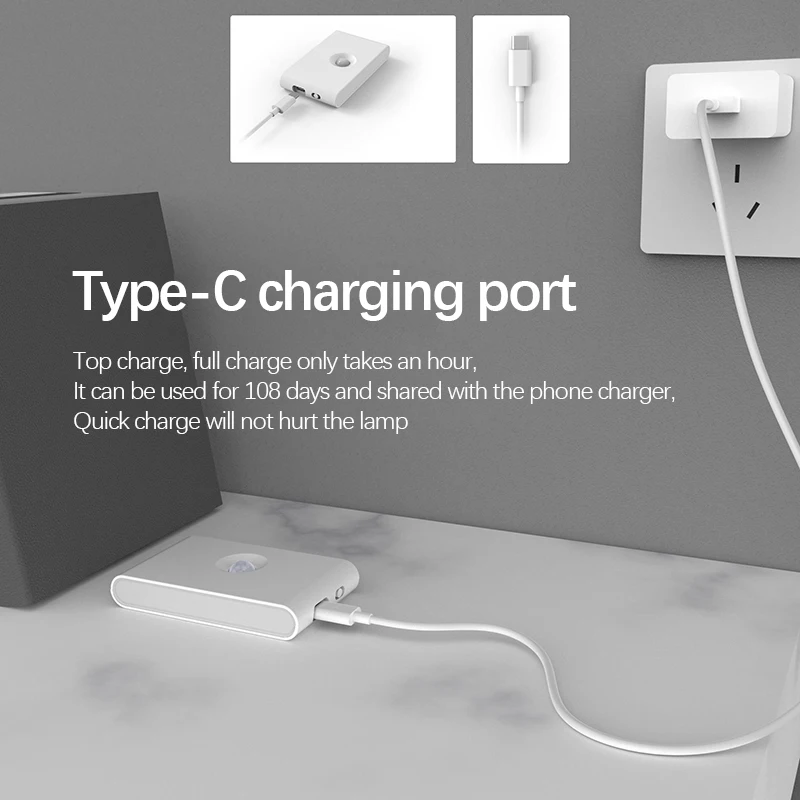 LED Human Body Infrared Intelligent Induction Small Night Light USB Type-C Rechargeable Wireless Magnetic Suction Lamp - Купить с бесплатной доставкой