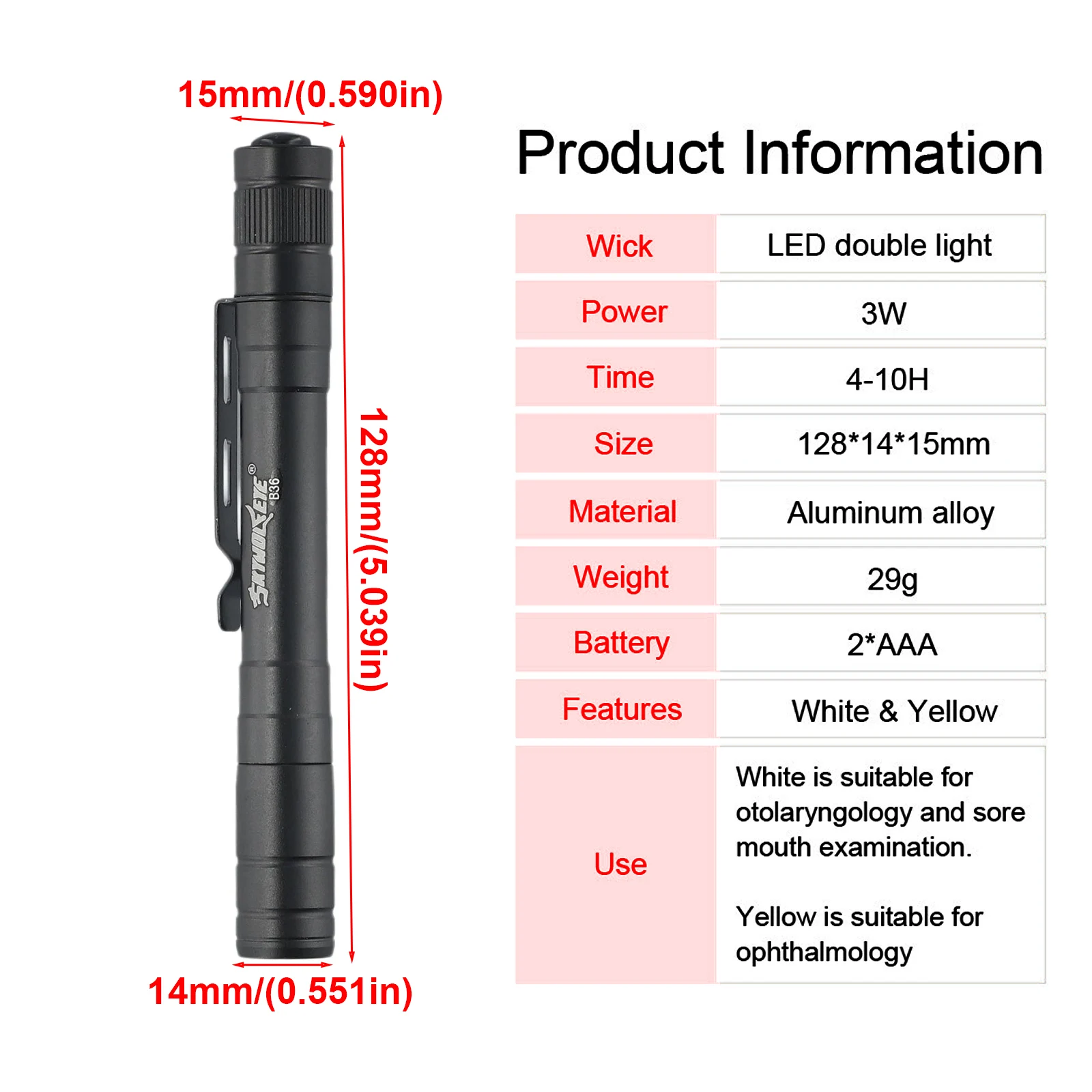 herTAKyLXQHere you can buy LED LED Flashlight LED flashlight Mini Outdoor Source Travel White Light White light Yellow Light 128*14*15mm Yellow light 4-10H with free delivery to your post office.