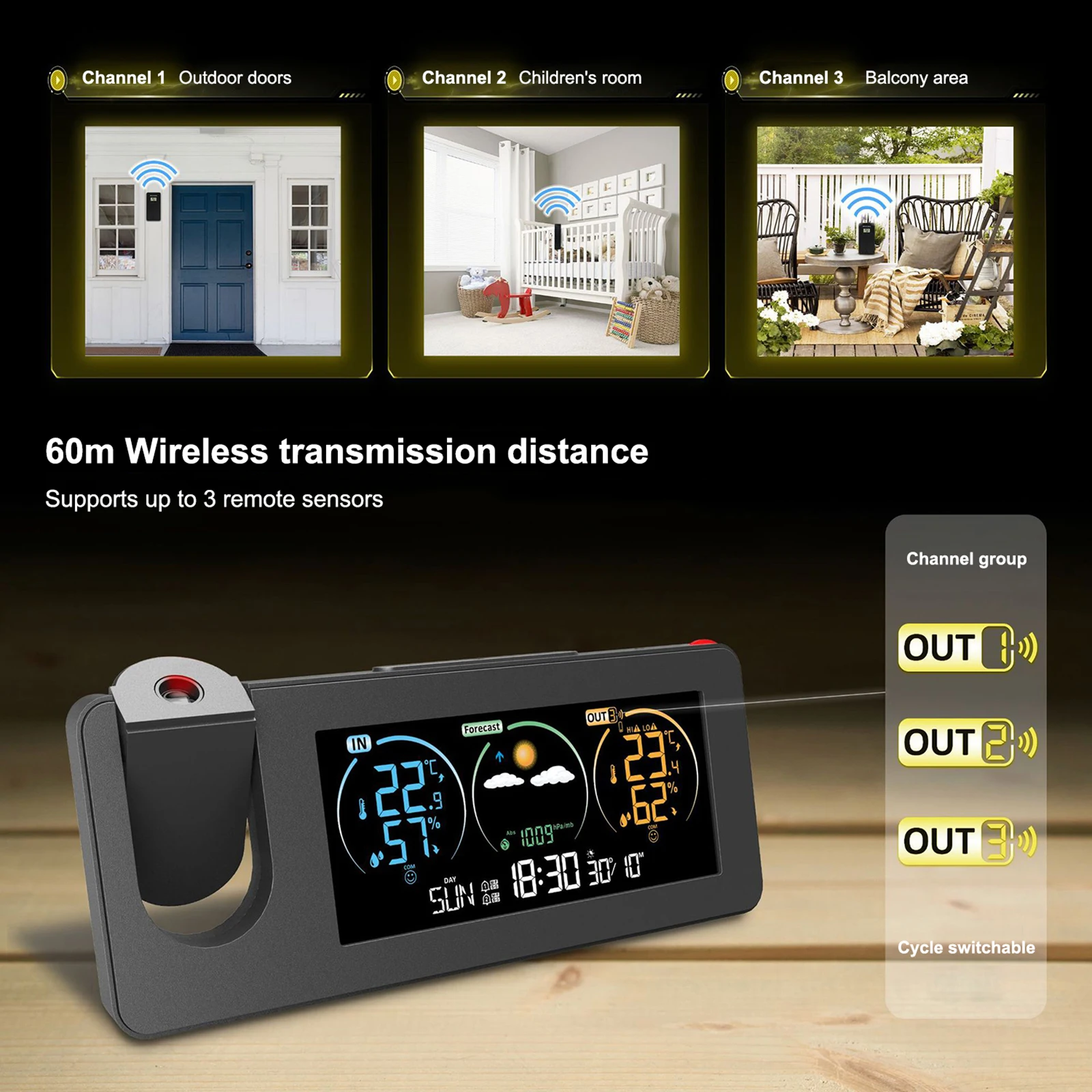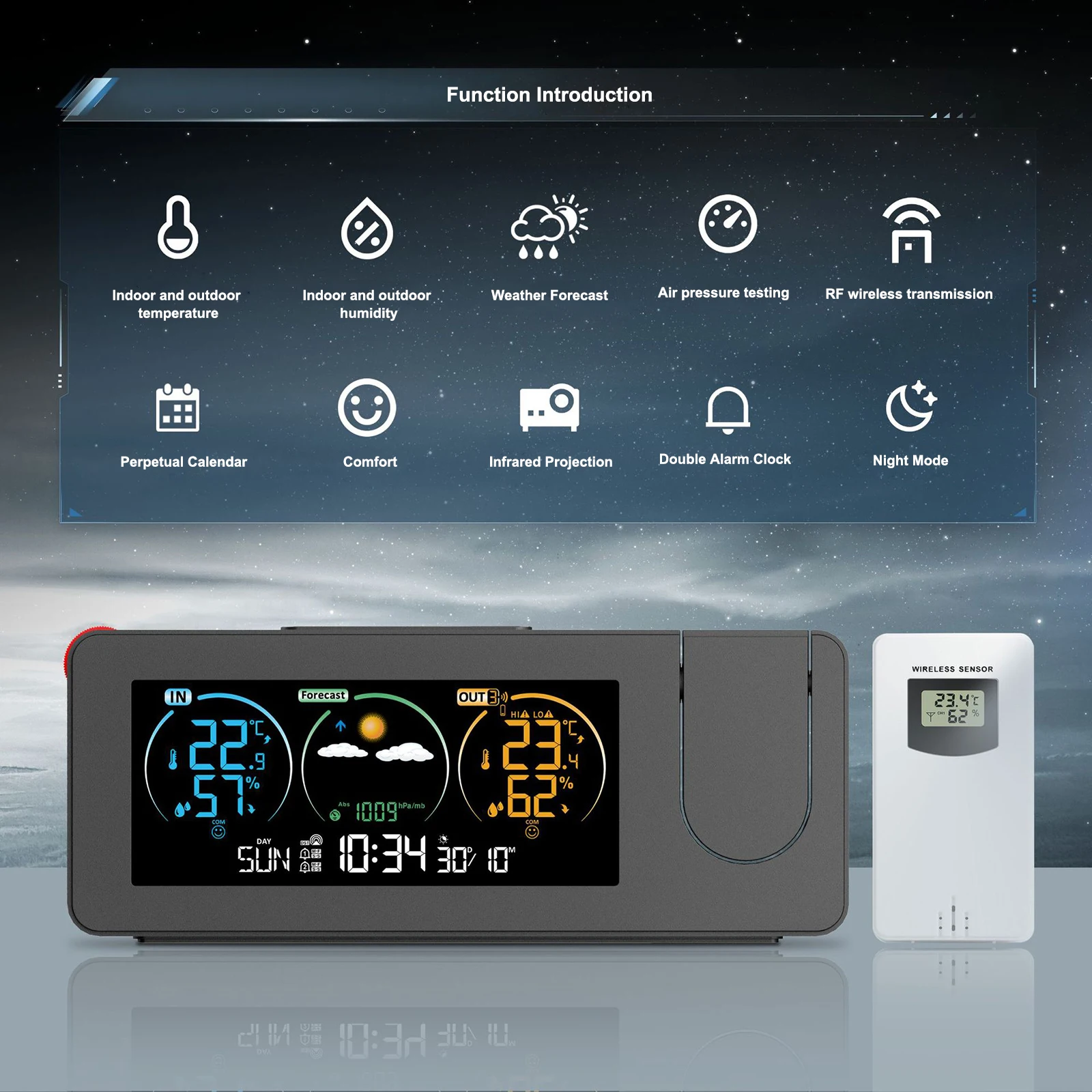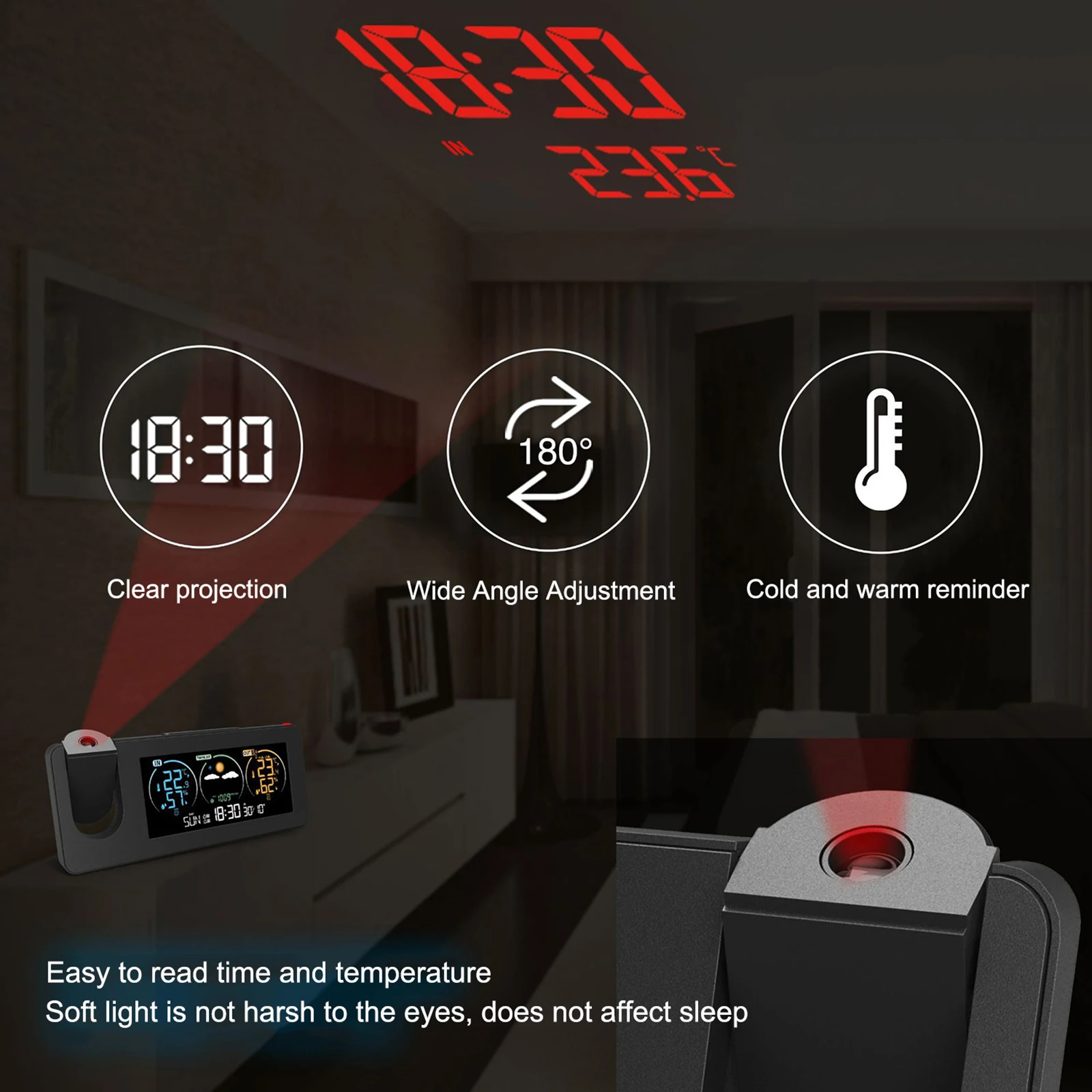 YVBpJmPsrHere you can buy LED Large Display Electronic Clock 180 Degree Rotating Projection Alarm Clock With Weather Forecast Temperature Humidity Display with free delivery to your post office.