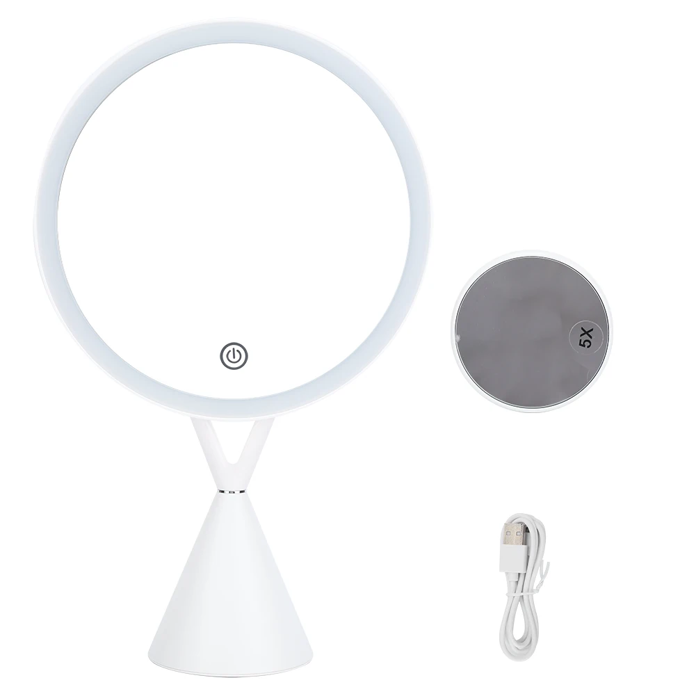 LED Light Makeup Mirror for Touch Button Home Desktop USB Charging Brightnes Adjustable Cosmetic Mirror 1X + 5X Magnifying Glass - Купить с бесплатной доставкой