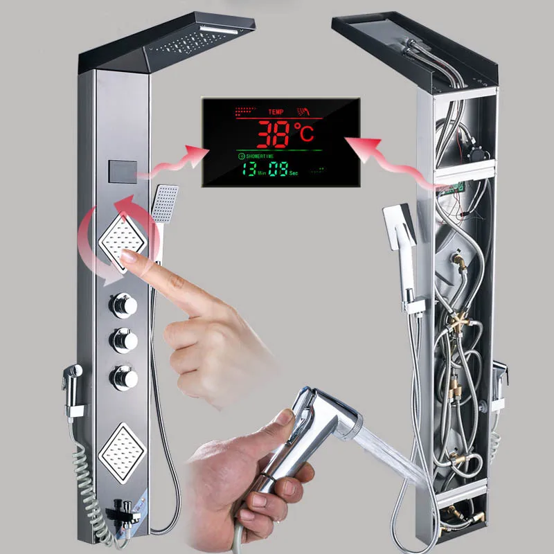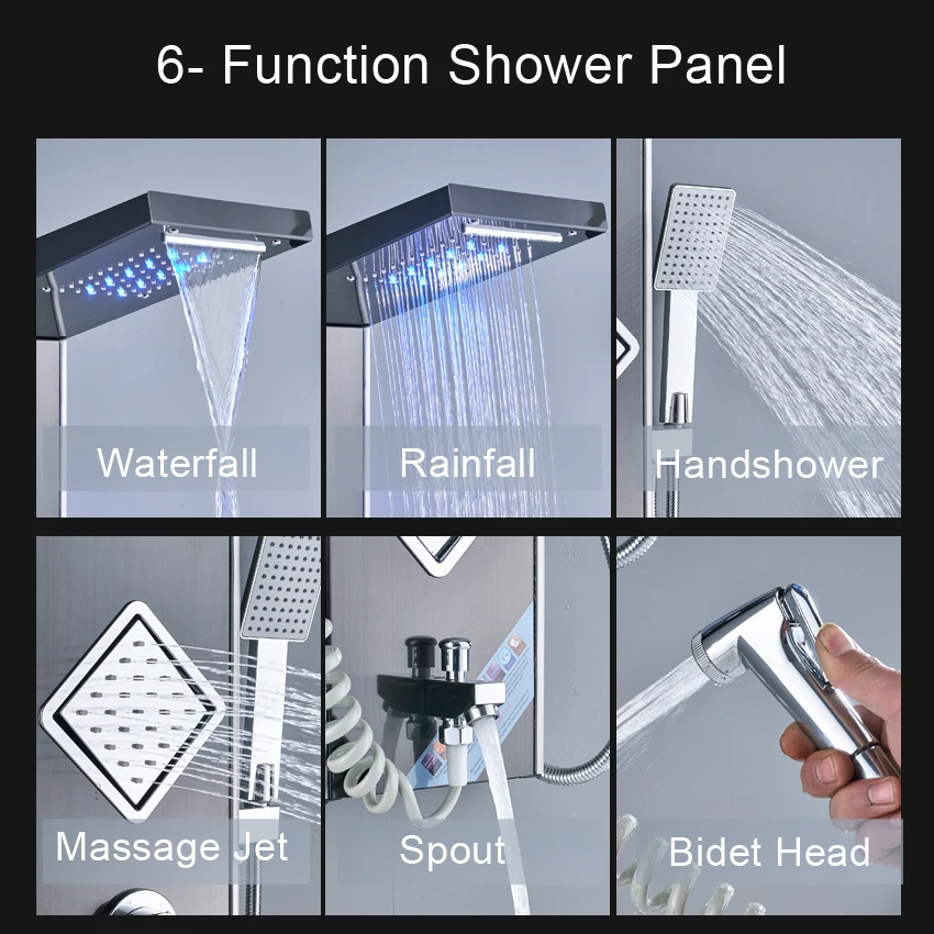 rxZwGSinEHere you can buy LED Light Waterfall Rain Shower Panel Bath Shower Faucet Column System 3 Handles 6-function Shower Mixers with Bidet Sprayer with free delivery to your post office.