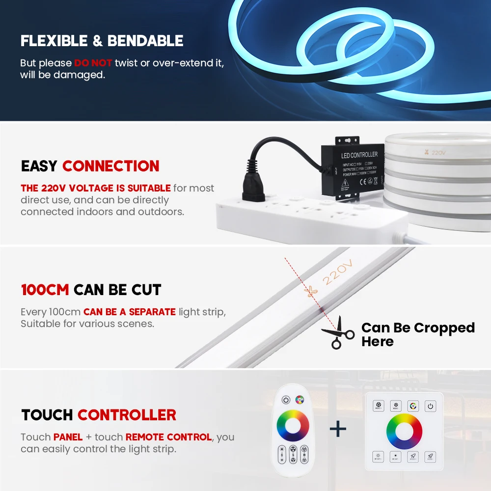 LED Neon Strip Light 110V 220V Dual Control Touch Remote 5050 RGB Neon Rope Light Waterproof DIY Christmas Holiday Decor Lamp - Купить с бесплатной доставкой