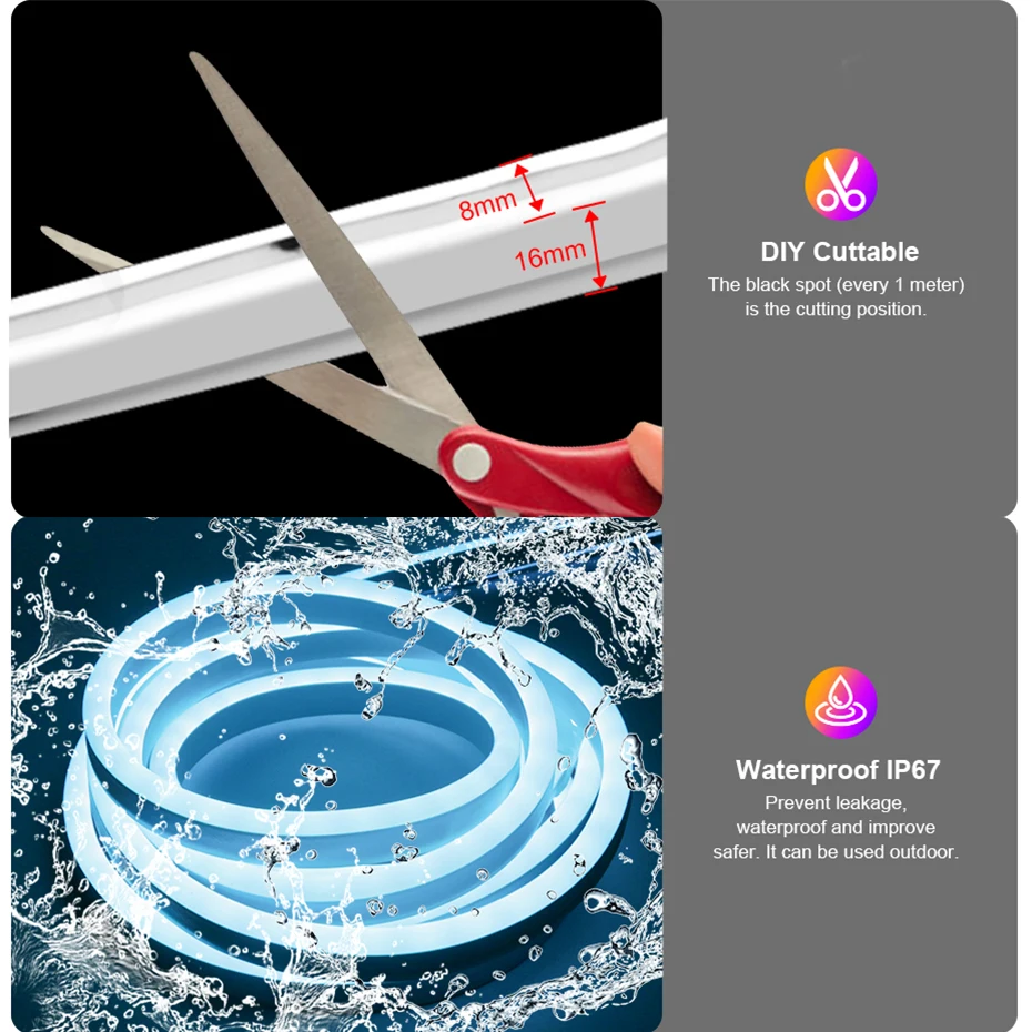 GwblWSPMHHere you can buy LED Neon Strip Light SMD 5050 IP67 Waterproof RGB Tape Strips AC 220V Dimmable Led Ribbon Remote Control For Room Decoration with free delivery to your post office.