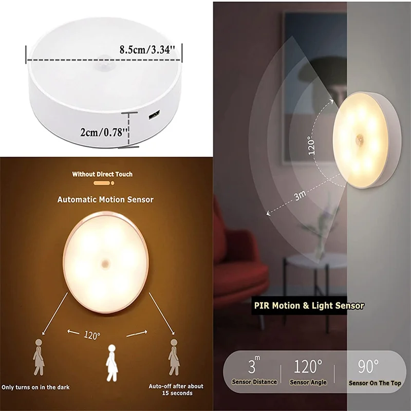 Motion Sensor Light Night Light LED Rechargeable Sensor Wireless Energy Saving Bedroom Wall Cabinet Light Body Induction Lamp 03 07