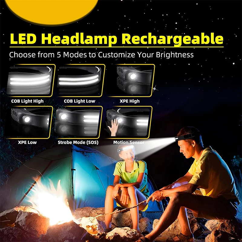 "LED Sensor Headlamp USB Rechargeable XPE+COB Headlight for Fishing Lantern Led Head Torch Camping Search Light Head Flashlight" * Buy Now With Free Shipping Just For $3