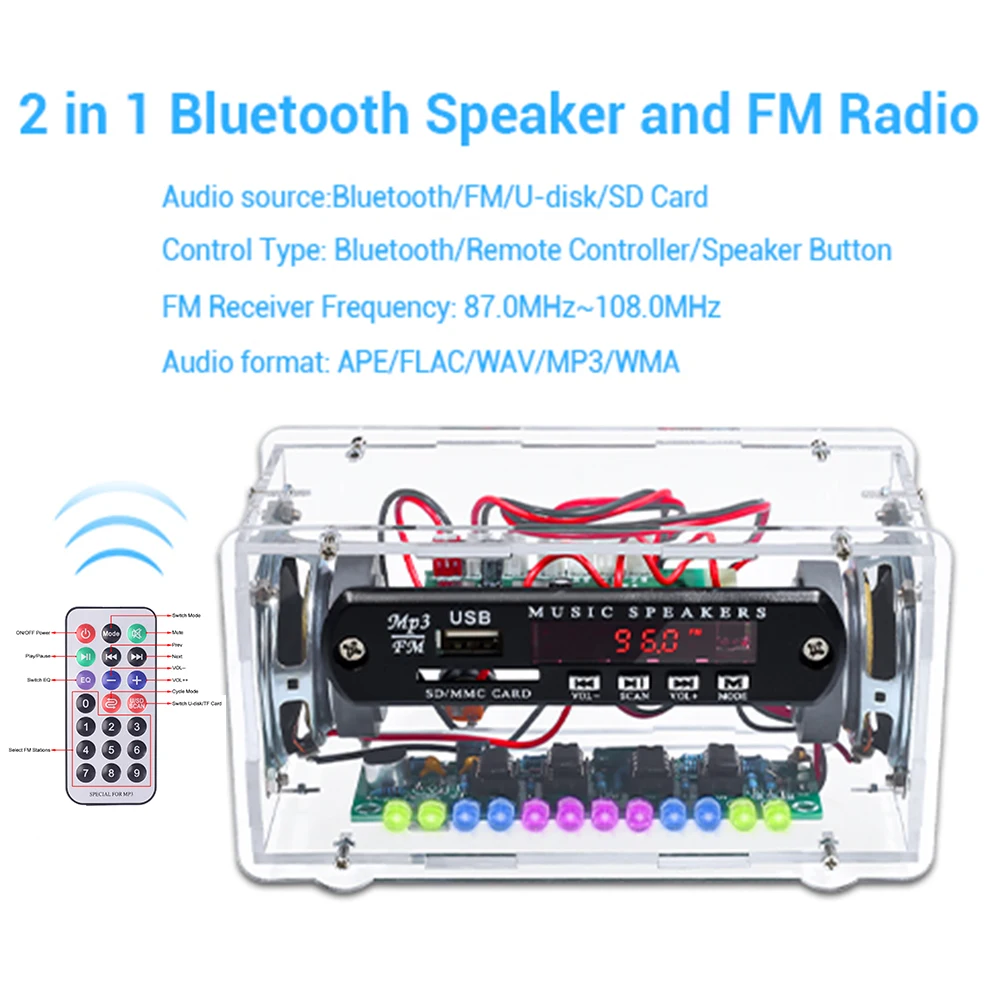 BRxwRzORrXЗдесь вы сможете купить LED Spectrum FM Bluetooth Audio Speaker DIY Kit with Infrared Remote Control 3W 4ohm Speakers Bluetooth/FM/AUX/U-disk/TF Card с бесплатной доставкой до вашего почтового отделения.