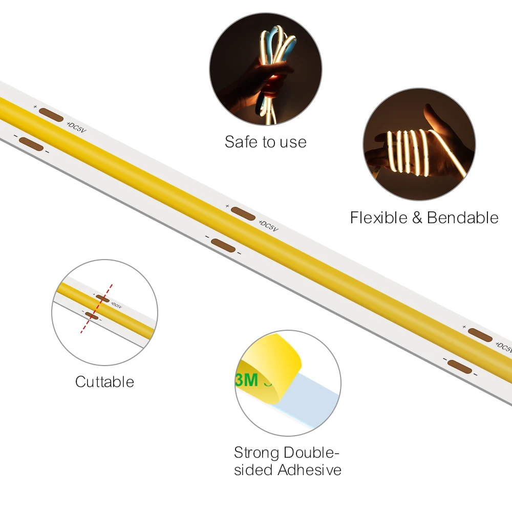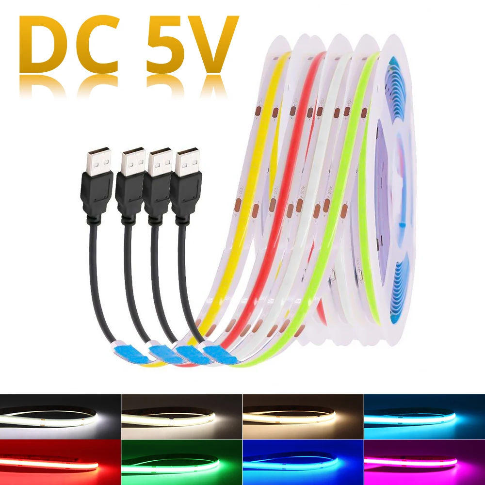qcoEiTMuAWHere you can buy LED Strip 5V USB COB LED Strip Light Flexible Lamp Tape Ribbon Light Warm Natural White Red Blue Green Red Color 5V LED Strip with free delivery to your post office.
