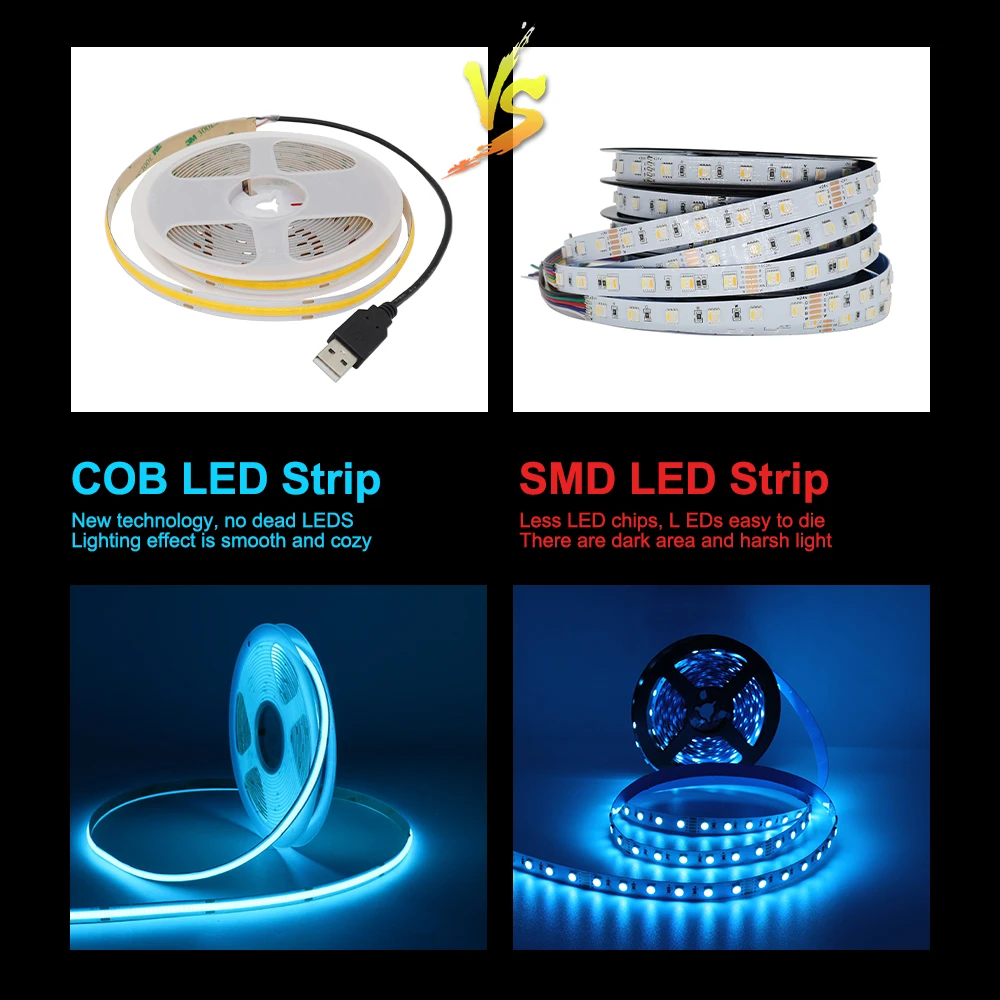 "LED Strip 5V USB COB LED Strip Light Flexible Lamp Tape Ribbon Light Warm Natural White Red Blue Green Red Color 5V LED Strip" * Buy Now With Free Shipping Just For $7