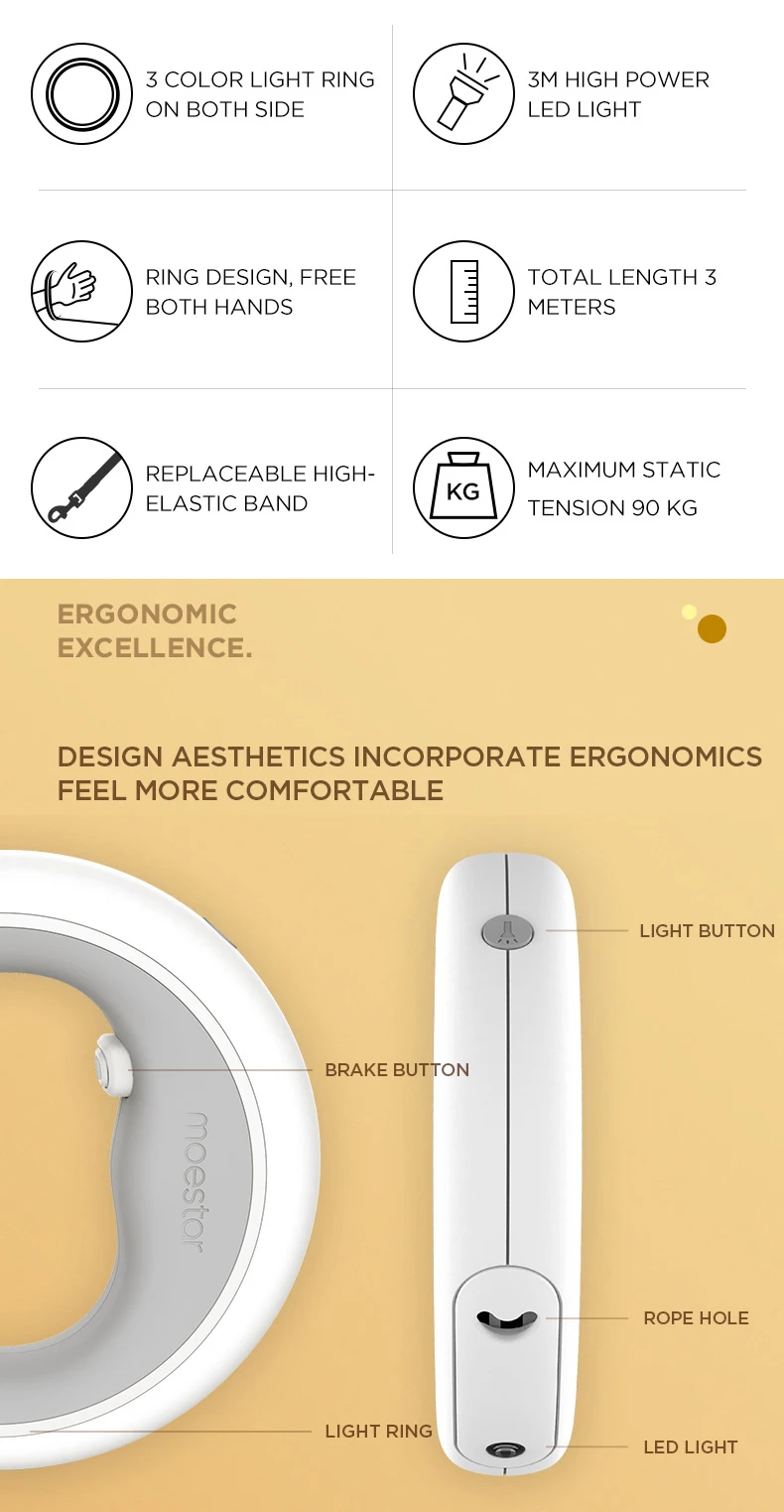 LEEDOAR Luxurious Smart Dog Leads Rope Retractable Anti-shock Walking Hand Free LED RGB Light Pet Leashes Dogs Pets Acessorios - Купить с бесплатной доставкой