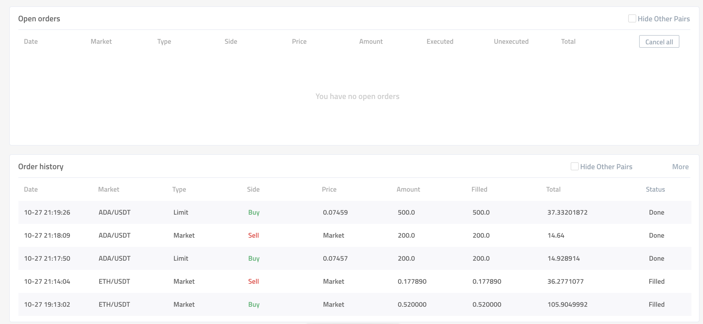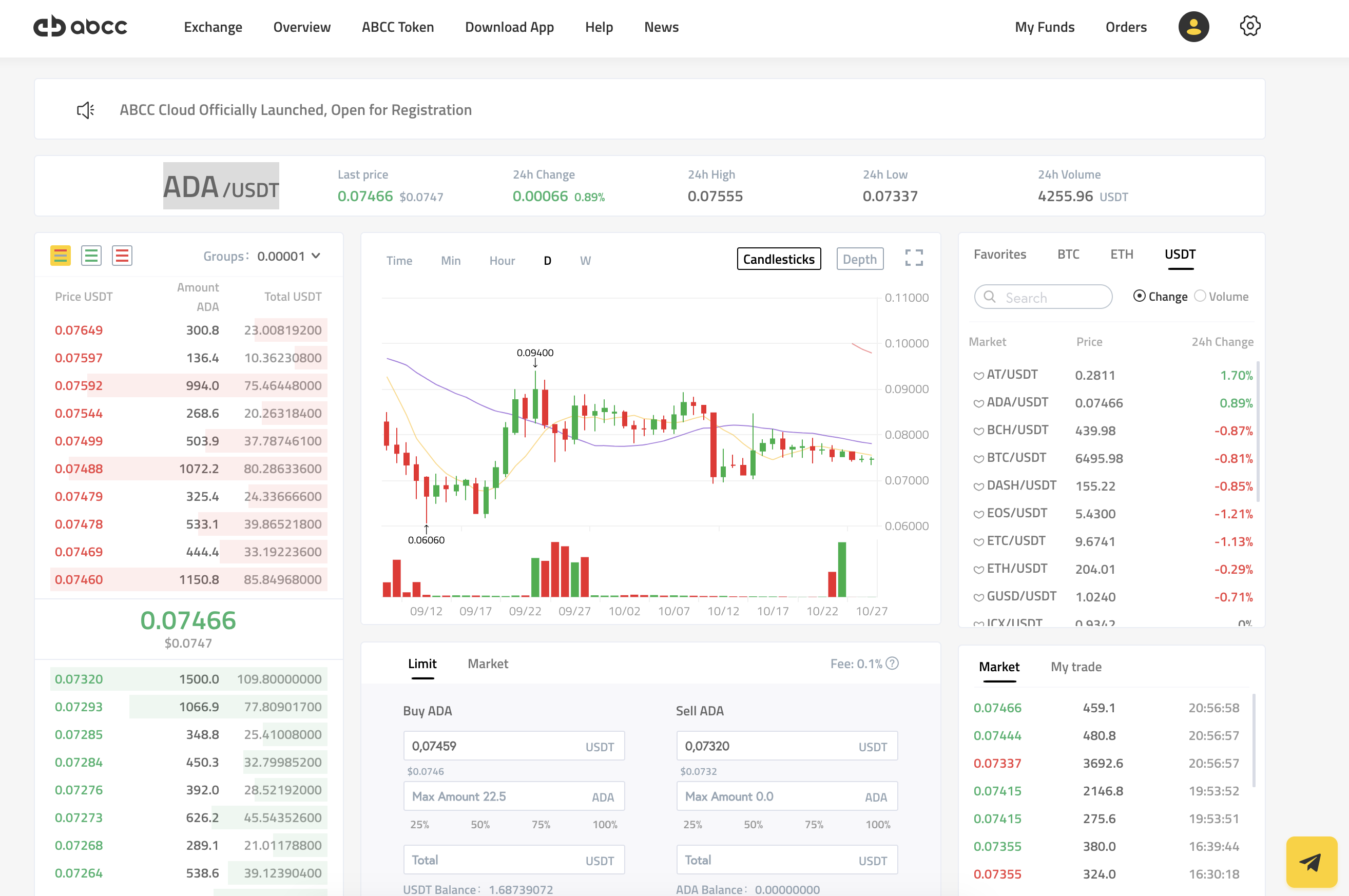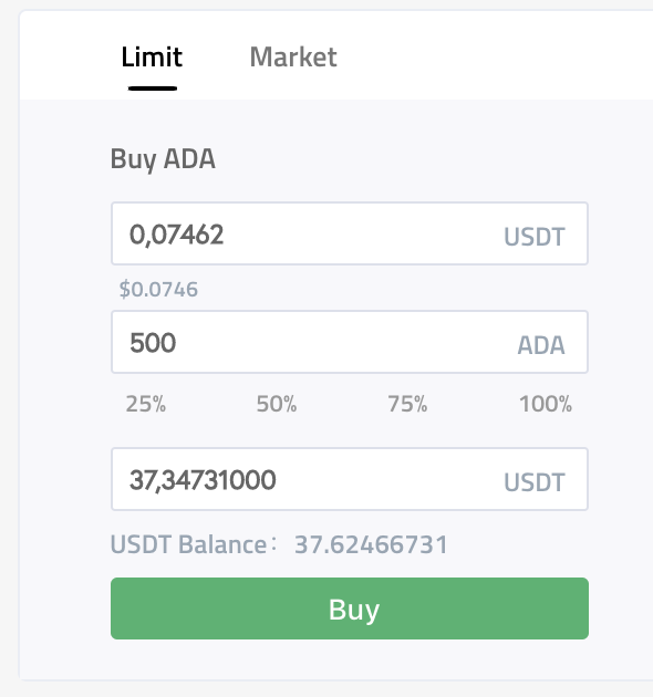 Дальше мы заходим в любую пару, например ADA/USDT и начинаем работать.