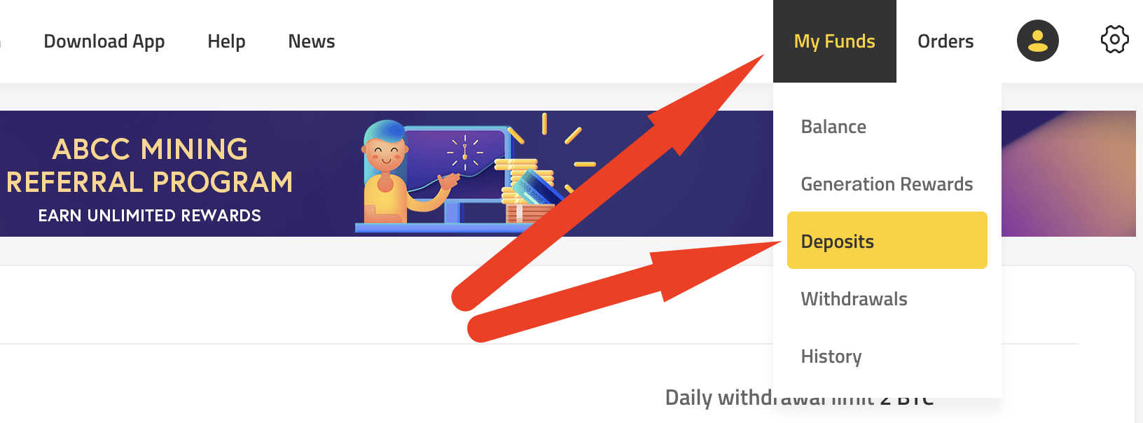 Чтобы узнать свой эфир кошелек — нам нужно вернуться на биржу, зайти в My Funds> Deposits и выбрать ETH