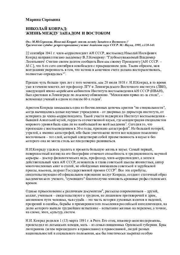 по дисциплине «Введение в востоковедение» Направление «Востоковедение и африканистика» 032100 .62 . на тему: «Роль личности в истории востоковедения-Конрад Н .И .» …