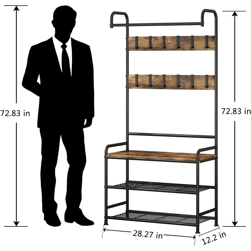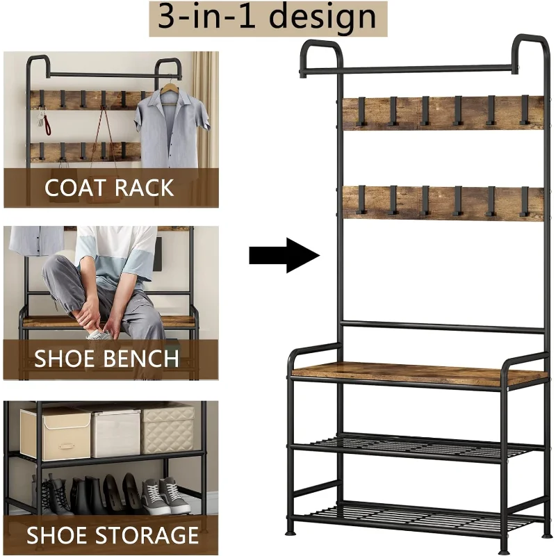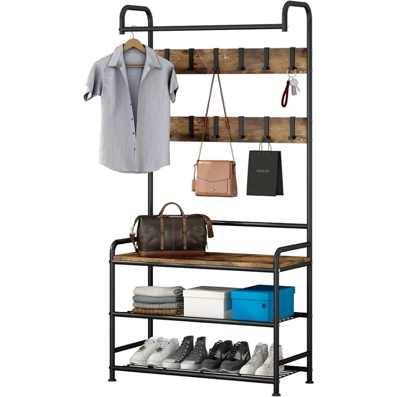 LINZINAR Coat Rack Shoe Bench 3-in-1 Hall Tree with Bench and Shoe Storage for Entryway Heavy Duty MDF Stand Coat Rack Indust - Купить с бесплатной доставкой