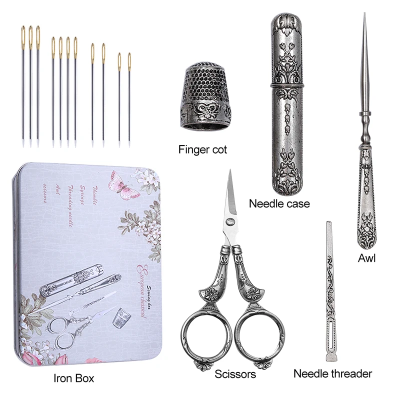 LMDZ 15Pcs/ Set Sewing Tool Set Vintage Scissors/ Needle bottle/ Needles/ Sewing Thimble/ Storage Box Sewing Kits For Needlework - Купить с бесплатной доставкой