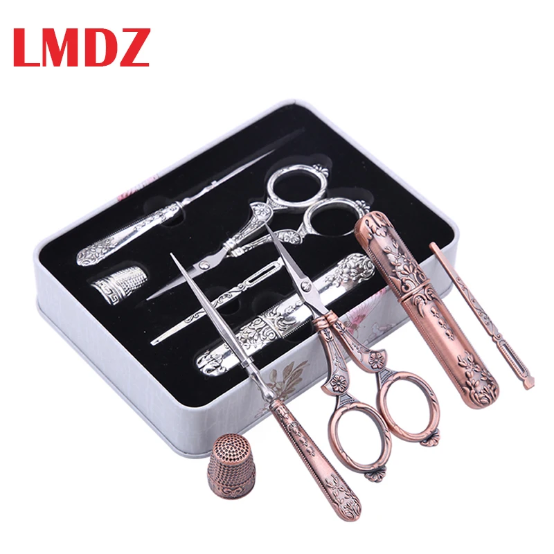 ajgVVJVxZjЗдесь вы сможете купить LMDZ 15Pcs/ Set Sewing Tool Set Vintage Scissors/ Needle bottle/ Needles/ Sewing Thimble/ Storage Box Sewing Kits For Needlework с бесплатной доставкой до вашего почтового отделения.