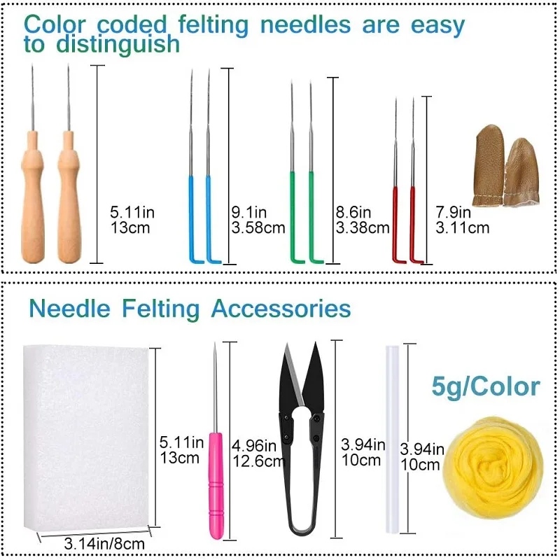 LMDZ Wool Roving Felting Kit Complete Needle Felting Starter Kit with Basic Felt Tools and Supplies Wool Fibre for Beginners - Купить с бесплатной доставкой