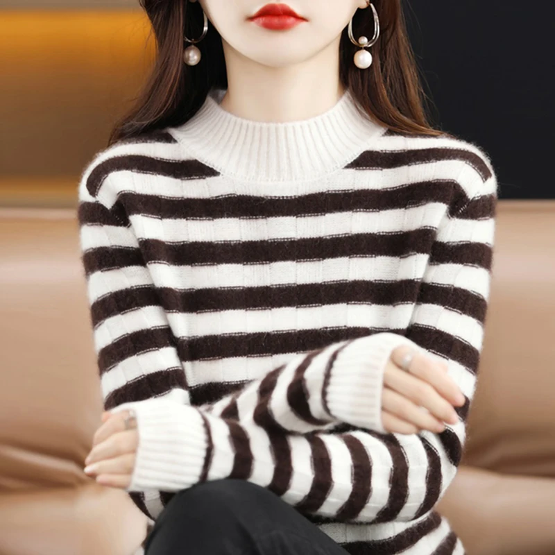 «LONGMING Knitwears Striped Women Sweater Cashmere Pullovers Merino Wool Knit Jumper Tops Fall Clothes 2023 Spring Korean Fashion» по лучшей цене на рынке! Всего за 44$ (4180рублей)