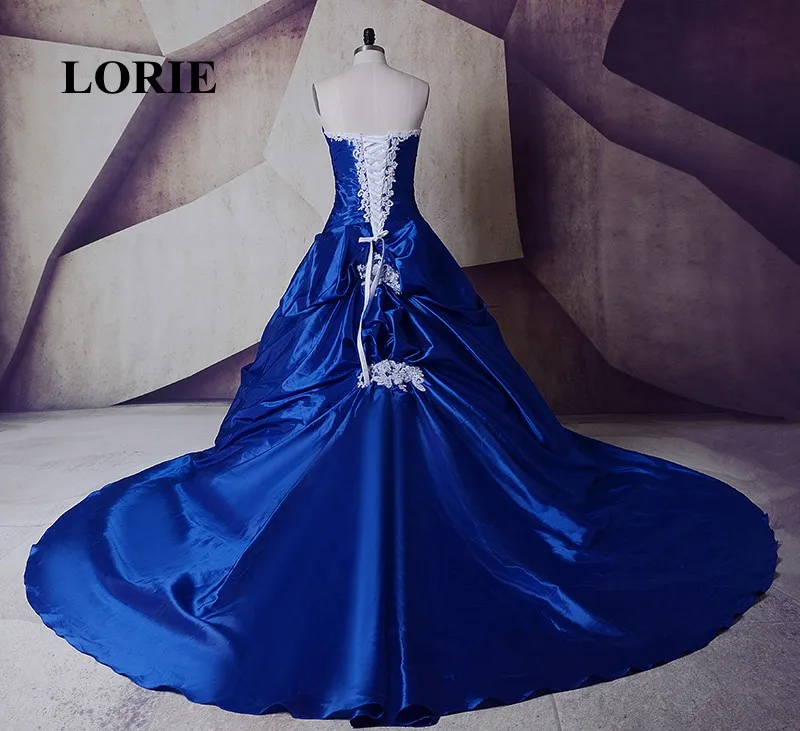 «LORIE Gothic Royal Blue Cathedral Train Wedding Dresses With White Lace Ball Gown Custom Made High Quality Bride Gown Real Photo» по лучшей цене на рынке! Всего за 134$ (12730рублей)