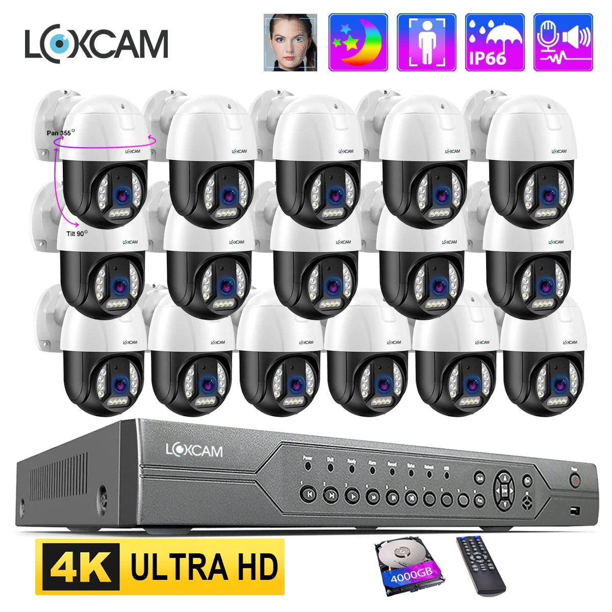 wvpAGbZcHere you can buy LOXCAM 16CH 4K PTZ Security System 8MP 4MP Outdoor Ai Face Detection Two Way Audio Color Night Video Surveillance Camera Kit with free delivery to your post office.