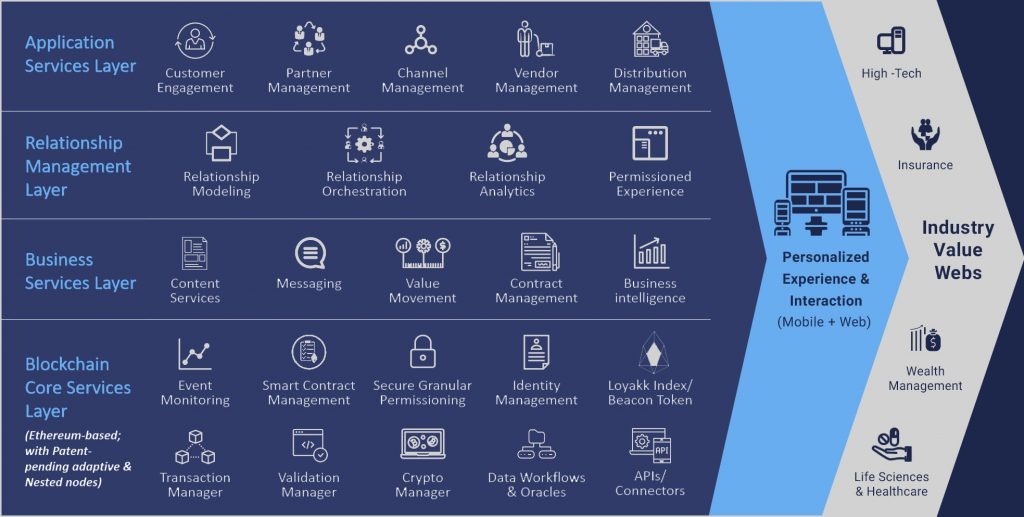 The Loyakk Vega Business Relationship platform will leverage patent-pending nestedblockchain architecture and a proprietary consensus mechanism to share and/or move data and value between business network participants based on identity, relationship and business rules. Vega will thus deliver key features that are the foundation of valuewebs. These are as follows: