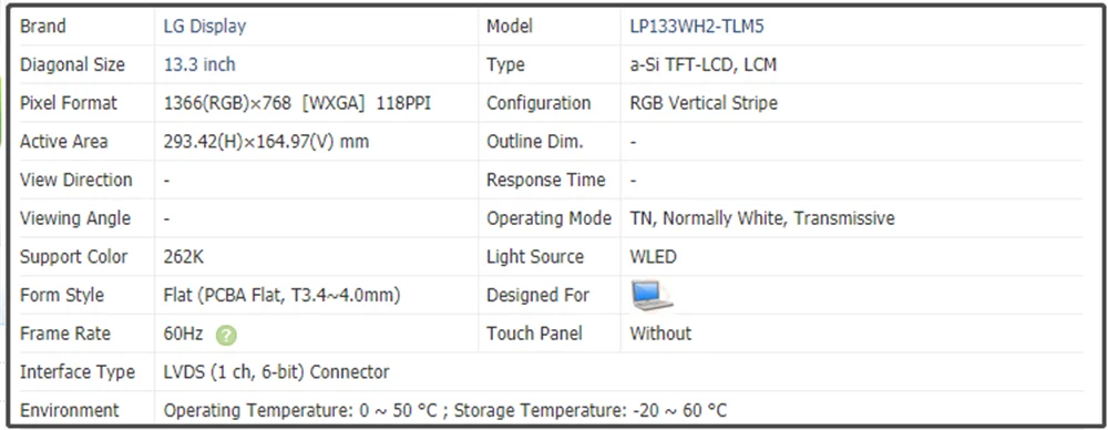 vLuJskyNjJLooked for LP133WH2-TLM5 13.3 inch LAPTOP Screen Replacement WXGA HD LED LCD Screen Panel 1366x768 40Pins 60Hz 262K for a long time, but could not find it? Bring to your attention LP133WH2-TLM5 13.3 inch LAPTOP Screen Replacement WXGA HD LED LCD Screen Panel 1366x768 40Pins 60Hz 262K with the best price!