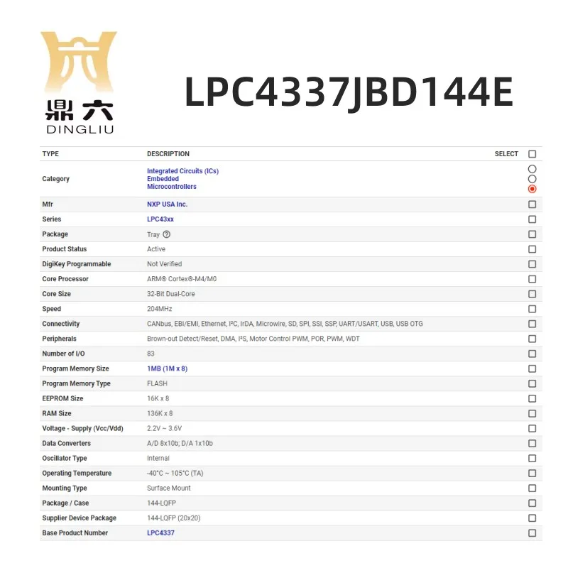 "LPC4337JBD144E Microcontroller IC 32-Bit 144LQFP" * Buy Now With Free Shipping Just For $53