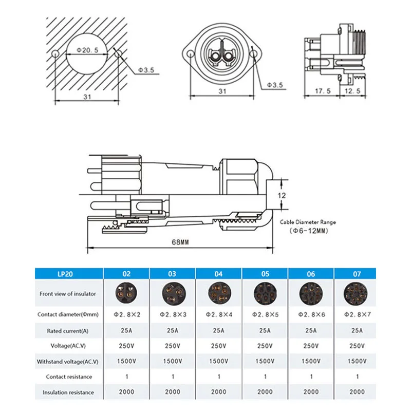 «LP/SP20 IP68 Waterproof Flange Connector 2 3 4 5 6 7Pin Male Female Plug And Socket Screw Crimp Aviation Cable Connector» по лучшей цене на рынке! Всего за 7$ (665рублей)