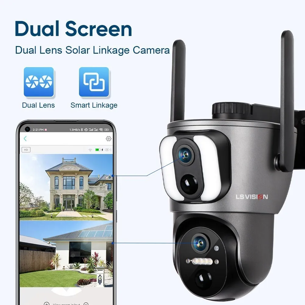 gizVyoyKZHere you can buy LS VISION 4mp Solar Security Camera Dual Screen Linkage Solar WiFi Camera Outdoor 4G Dual PIR Detection Human Auto Tracking with free delivery to your post office.