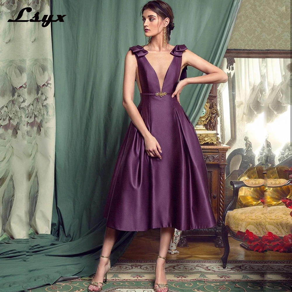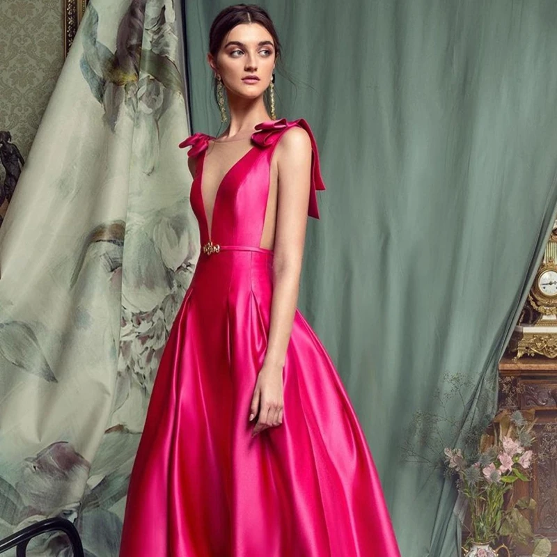 "LSYX Evening Dress 2023 A-Line Deep V-Neck Ankle Length Sleeveless Women Christmas Party Simple Satin Graceful" * Buy Now Just For 69$