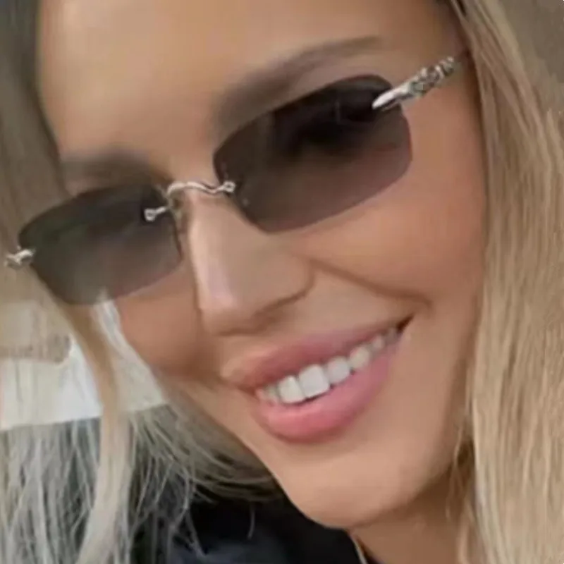 LUX CHRetro-Vintage Titanium Rimless Sunglasses UV400 Unisex HD Gradient Glasse 53-23-139 Models Round Rectangular Goggles - Купить с бесплатной доставкой