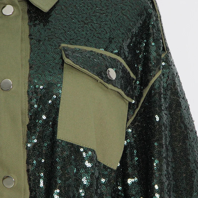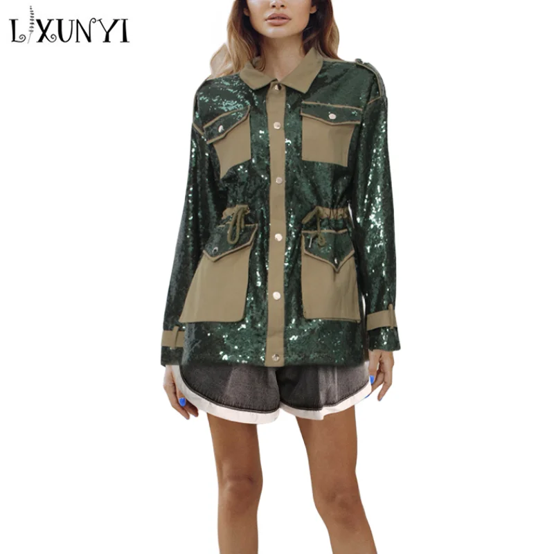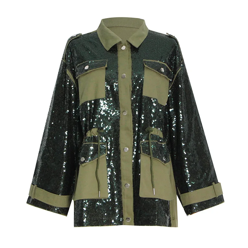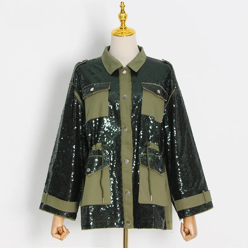 VLpsQBzhHxHere you can buy LXUNYI Cargo Pocket Design Sequined Heavy Patchwork Jacket Women Contrast Color Long Sleeve Drawstring Design Heavy Casual Coat with free delivery to your post office.