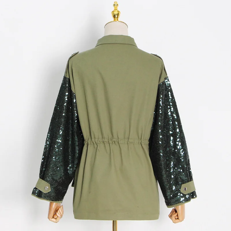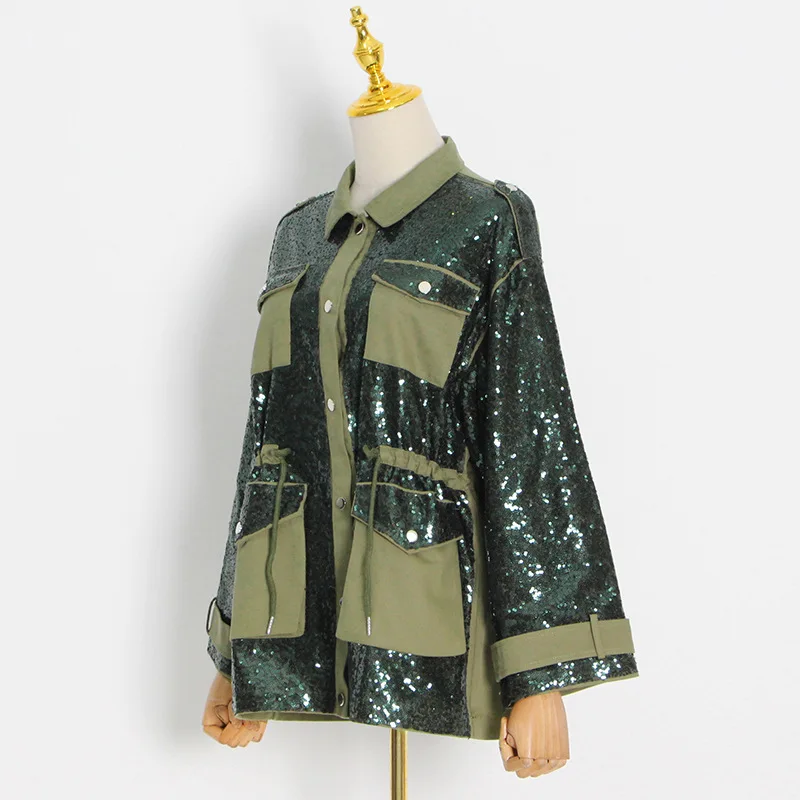 "LXUNYI Cargo Pocket Design Sequined Heavy Patchwork Jacket Women Contrast Color Long Sleeve Drawstring Design Heavy Casual Coat" * Buy Now With Free Shipping Just For $46