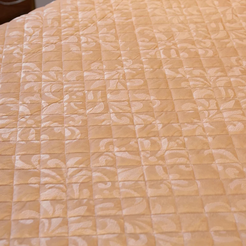 Deve essere più larga e lunga del quilt finito, di almeno 20 cm . Te la taglieranno al negozio di stoffe, però forse dovrai comprare due pezzi lunghi e cucirli insieme . Metti la fodera in un punto in cui puoi sistemare comodamente il tuo lavoro . Mettilo a faccia in giù sul pavimento . Il lato bello deve essere rivolto verso il pavimento .