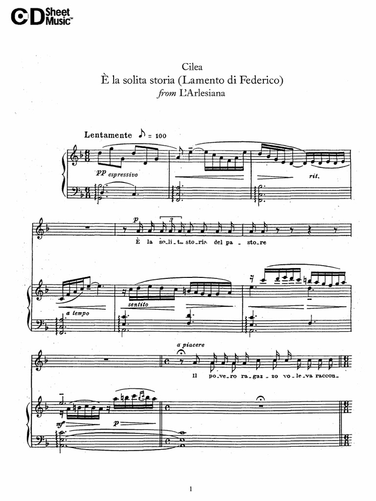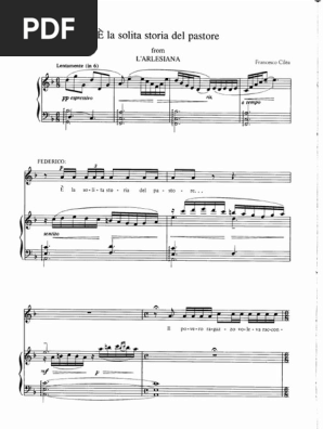 Jump to navigation Jump to search . " Γ la solita storia del pastore " , also known as " Lamento di Federico ", is an aria from act 2 of the opera L'arlesiana (1897) by Francesco Cilea . It is sung by Federico ( tenor ), who is deeply in love with a girl from Arles, the Arlesiana of the title, but his family has arranged his marriage with Vivetta .