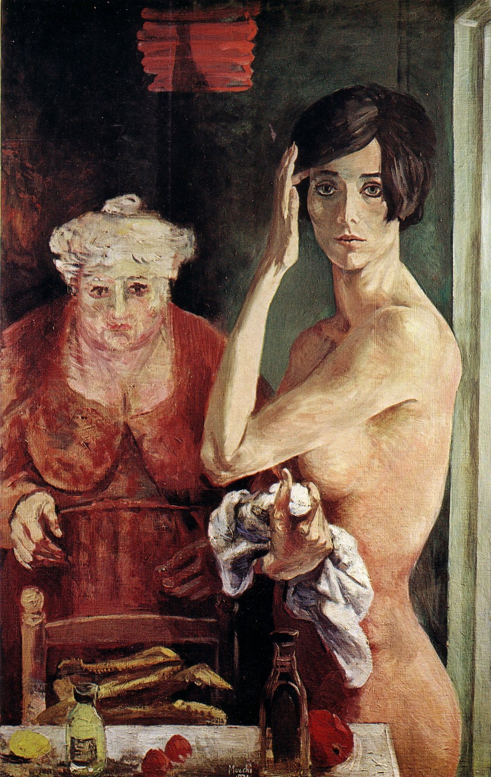 La giovane e la vecchia (1974) Gabriele Mucchi (1899 - 2002) Olio su tela cm . 75 x 120 . . . .