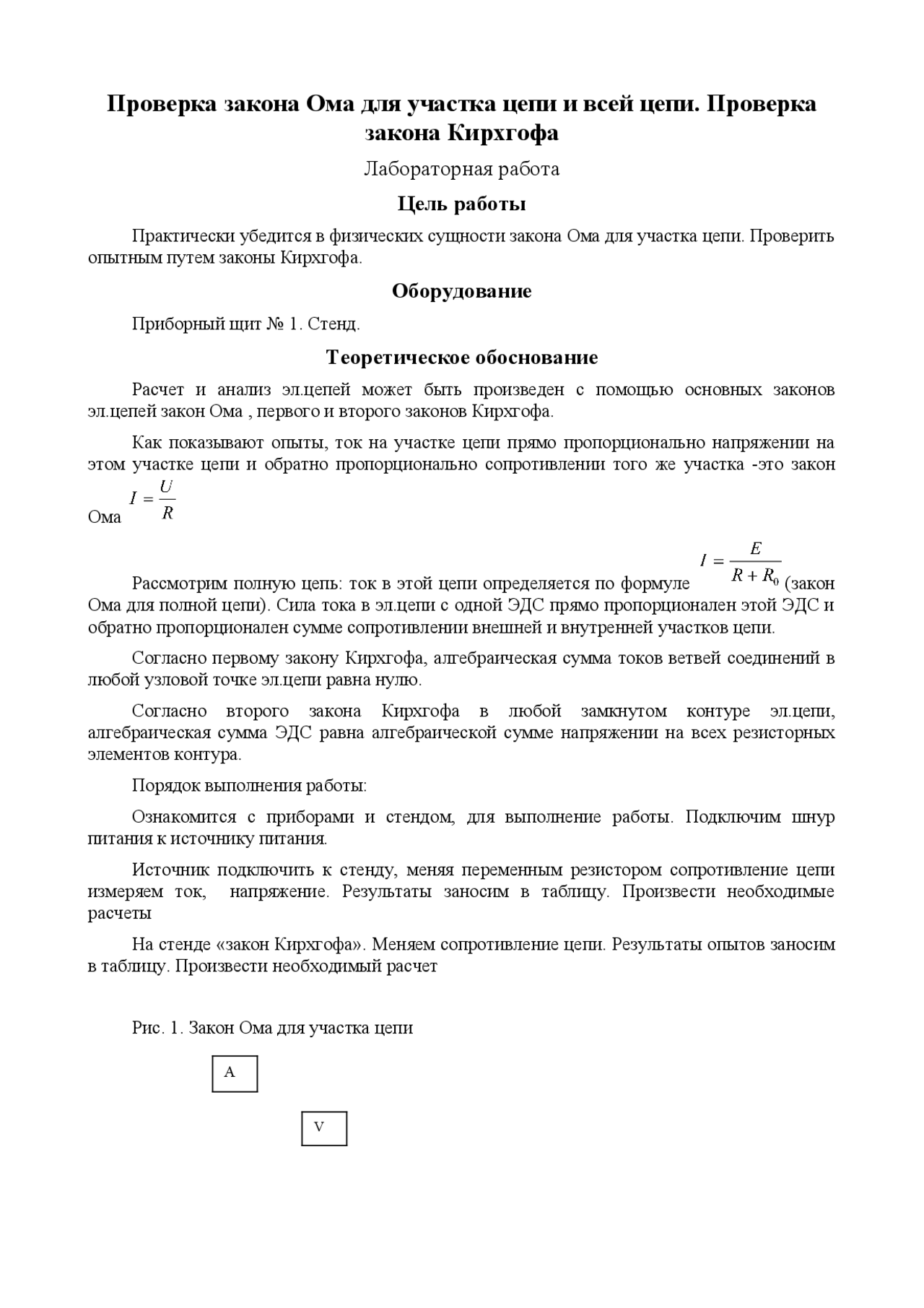 PDF Лабораторная ПРОВЕРКА СПРАВЕДЛИВОСТИ ЗАКОНА ОМА работы и . . .