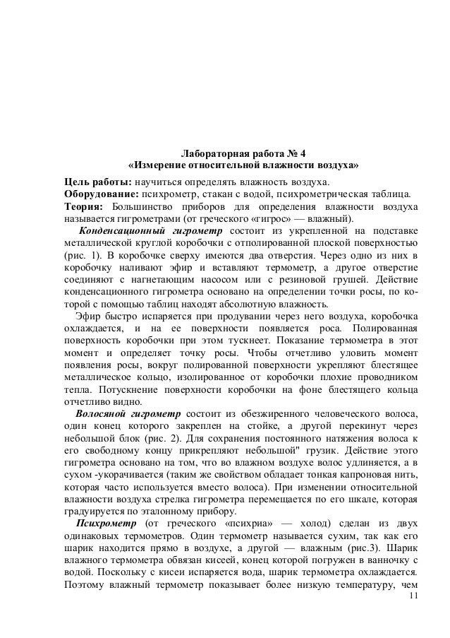 Определение относительной влажности воздуха лабораторная . . .