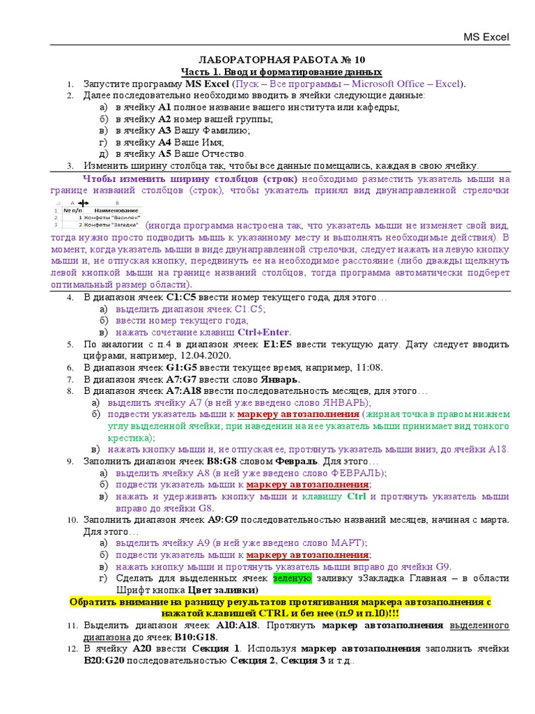 Сборник лабораторных работ "Работа в MS Excel"