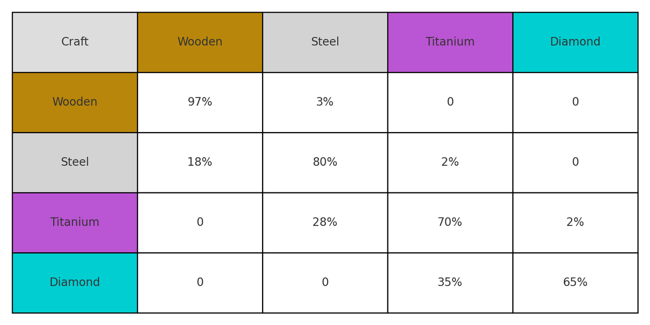 - The base success rate for crafting is 50%