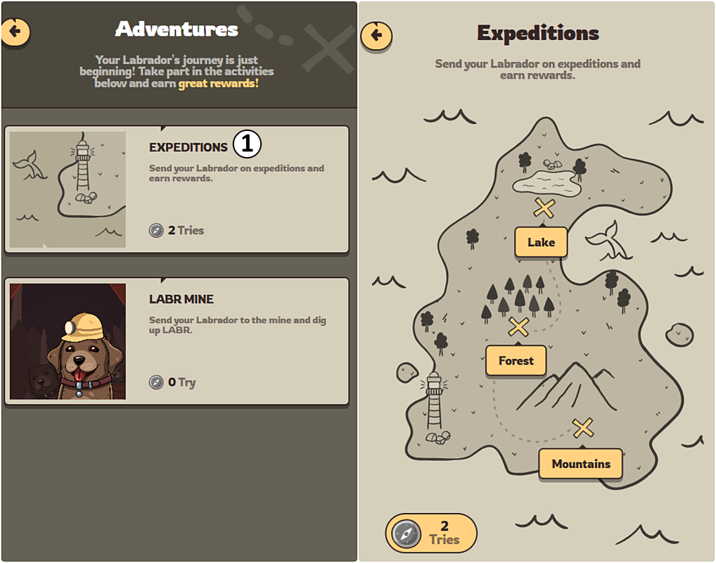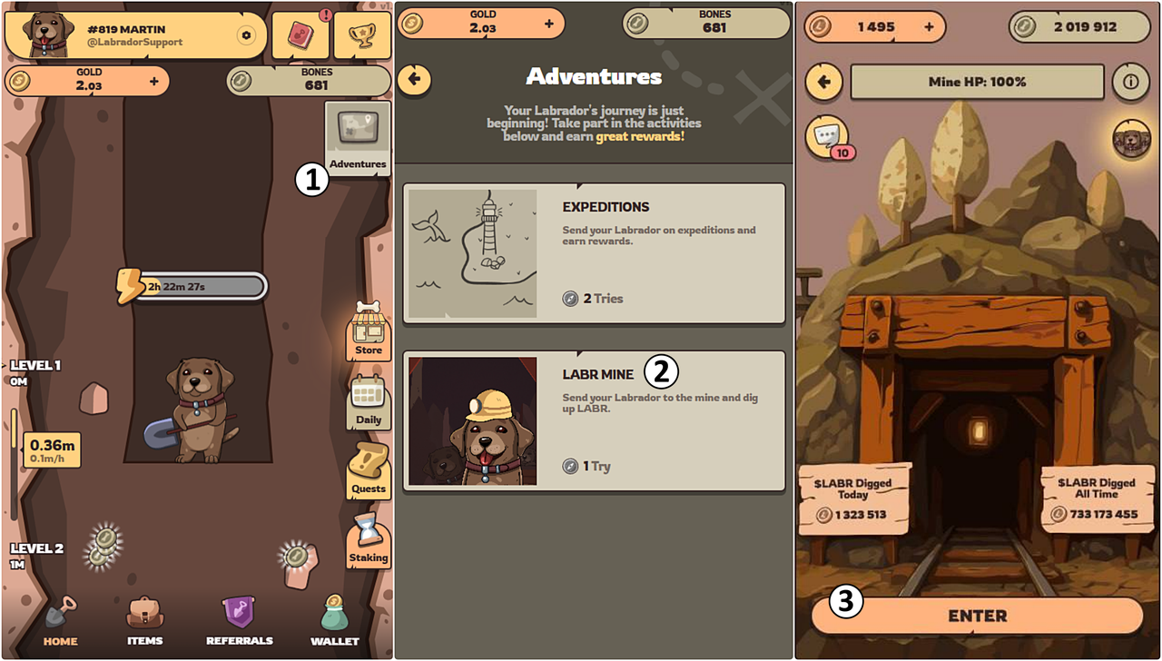Labrador Adventures is a GameFi project where players can level up their Labrador, mine $LABR tokens, create new items, and trade them.
