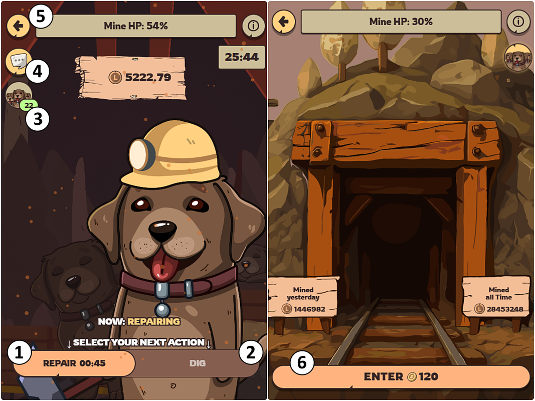 - Bones — used for upgrading shovel levels, repairing the mine, and other in-game actions.