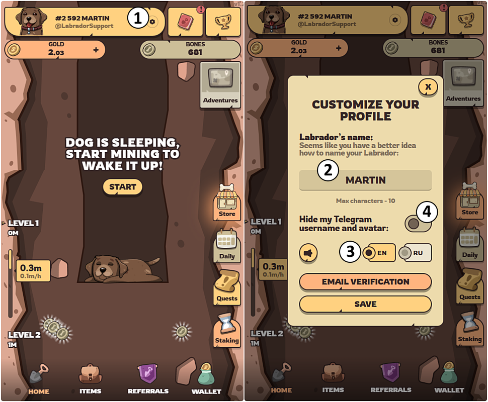 - Set a name (2) for your Labrador
