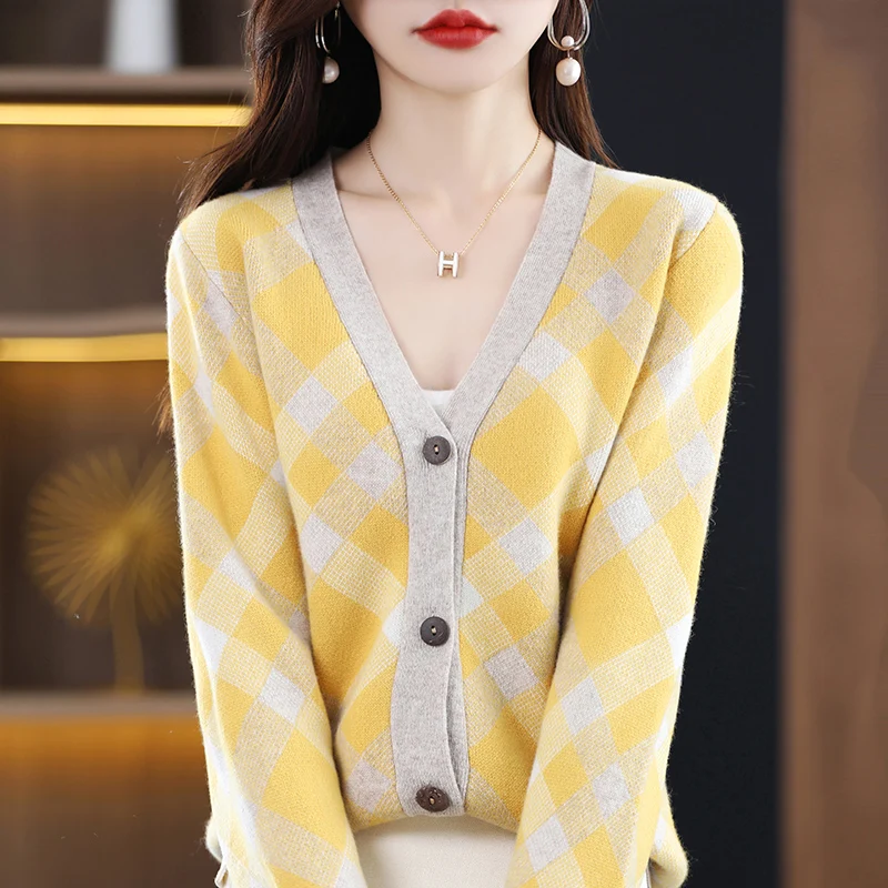 «Ladies 100% Pure Wool Knit Cardigan Match Color V-Neck Long Sleeve New Autumn And Winter Sweater Fashion Loose Cardigan» по лучшей цене на рынке! Всего за 47$ (4465рублей)