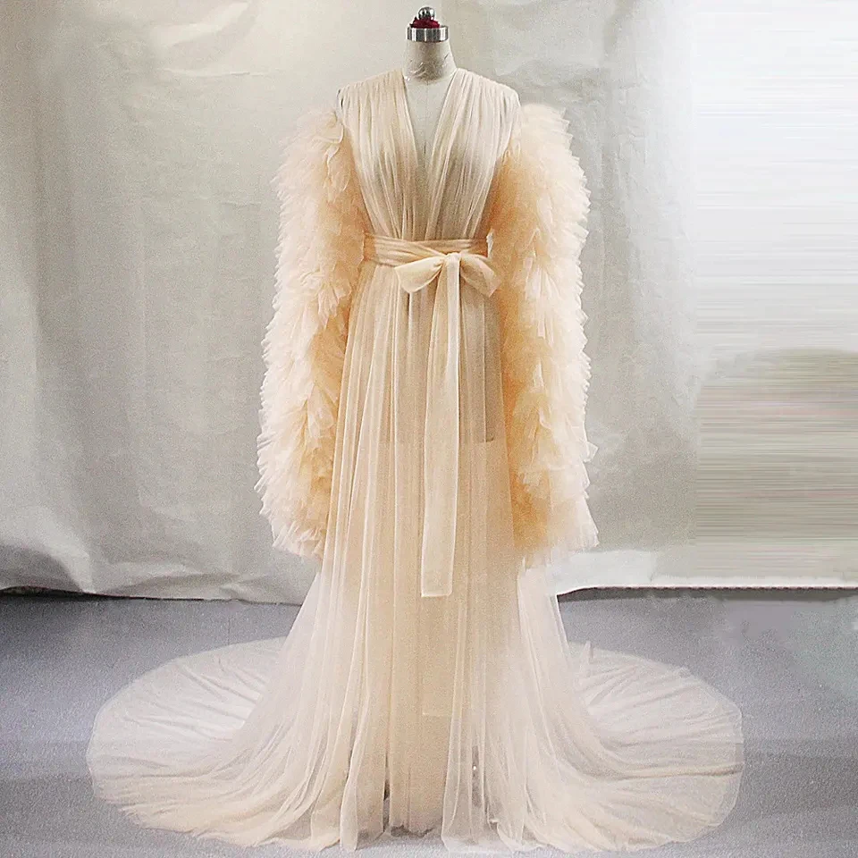 DqSQejXdHere you can buy Ladies Dressing Gown Perspective Sheer Long Robe Puffy Tulle Robe Sheer for Maternity Photoshoot with free delivery to your post office.