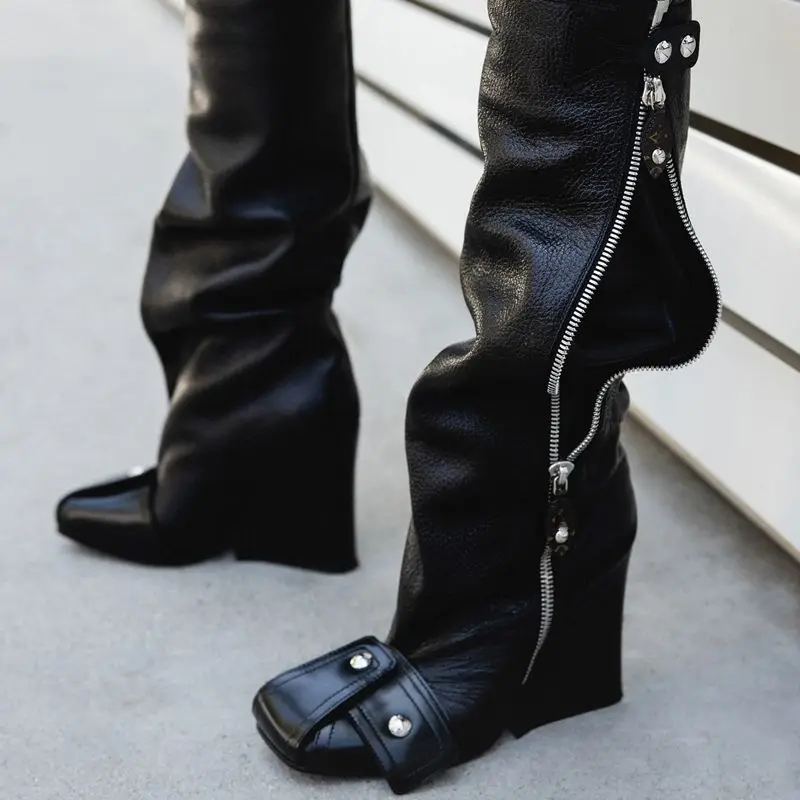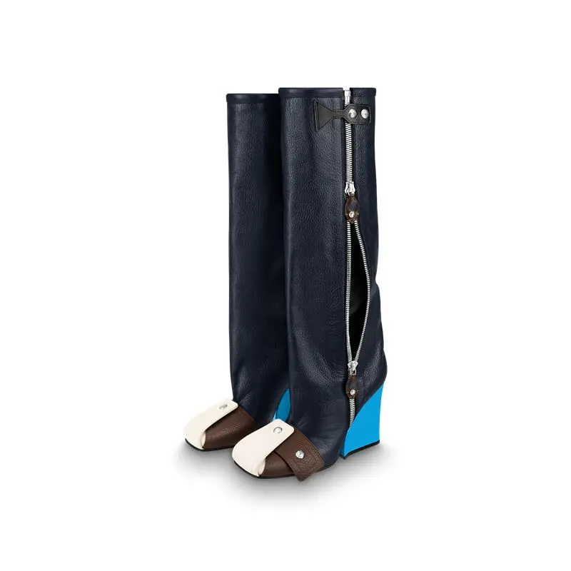 OiWTYYPGJHere you can buy Ladies Knee High Boots Square Catwalk Fashion Heel Square Toe Slip On Color Matching Mixed Color Buckle Rivet Shoes Big Size 43 with free delivery to your post office.