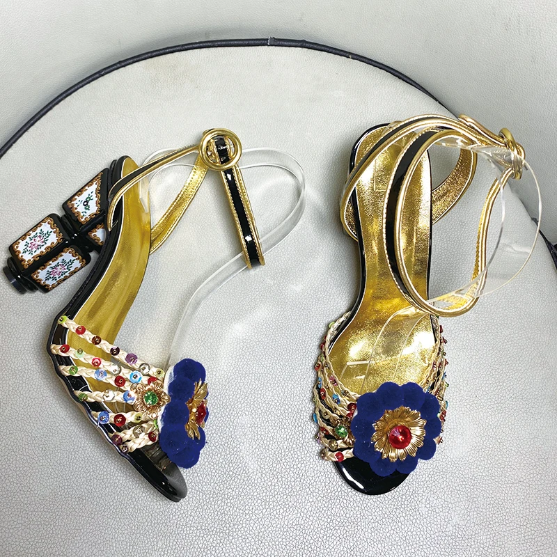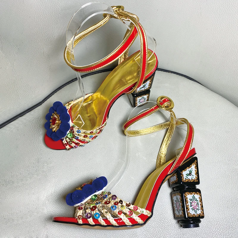 «Ladies diamond print sandals profiled chunky heel elegant banquet sandals white black daily mix color buckle sandals large size» по лучшей цене на рынке! Всего за 80$ (7600рублей)
