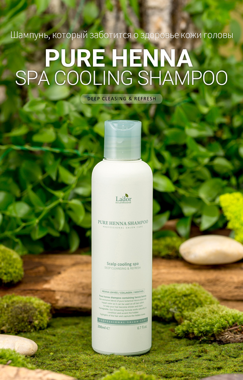 Освежающий шампунь с кактусом, хной и ментолом LADOR PURE HENNA SHAMPOO ...